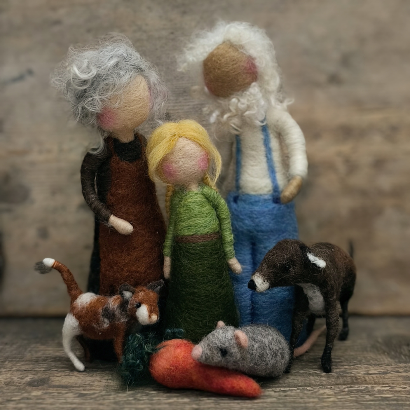 Über die Jahre sind so viele Figuren unter meinen Händen entstanden….viele aus meiner eigenen Laune heraus und noch mehr auf Bestellung für Kindergärten, Schulen, Bildungseinrichtungen oder auch Privatpersonen. Jede Einzelne bringt mich weiter auf meiner Reise durch die phantasievolle kleine Welt und lässt mich das Material Wolle immer neu austesten – ob nun in Nass – oder Nadelfilztechnik.