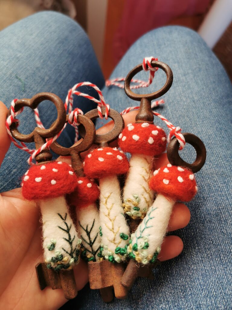 Wie immer im Handwerk: Detailarbeit kostet Kraft und Nerven, lohnt aber im Endeffekt jede Mühe. Und so flatterten am Ende des gemeinsamen Filztages wunderbar eigenwillige Schnappschnäbelchen in alle Richtungen heimwärts.