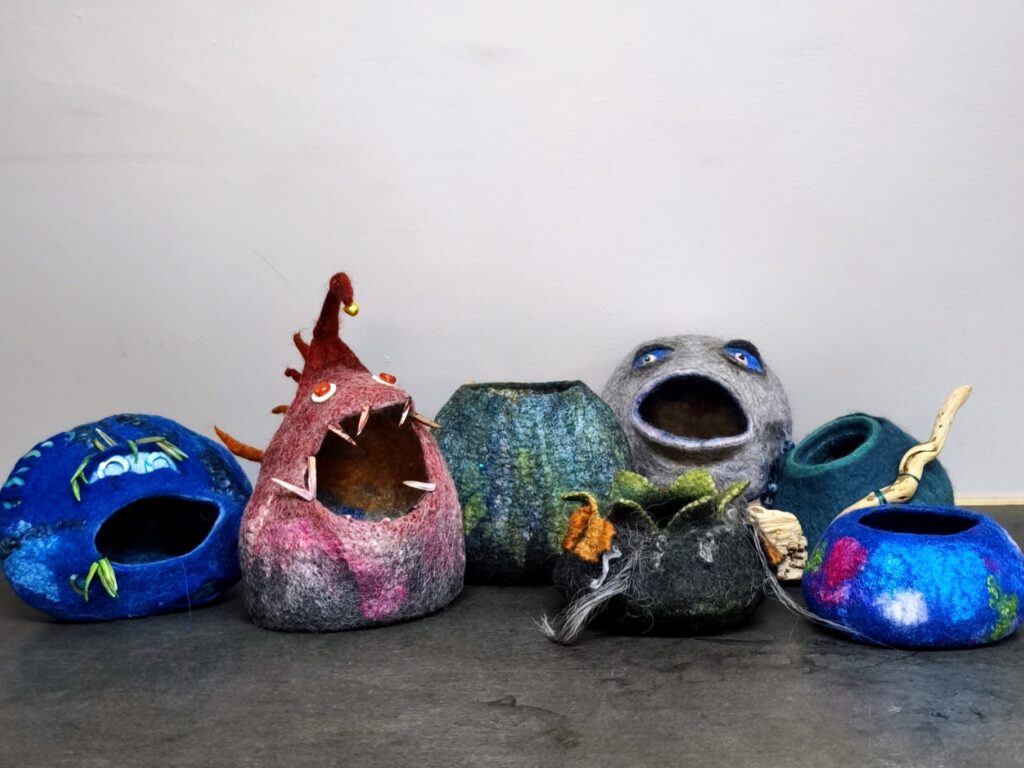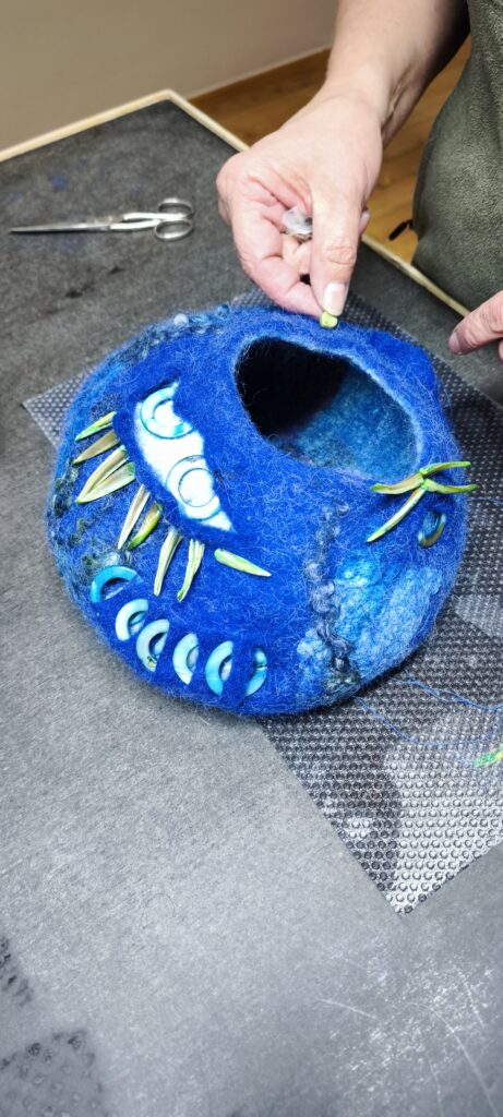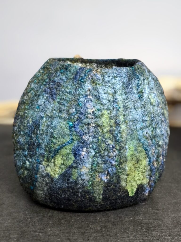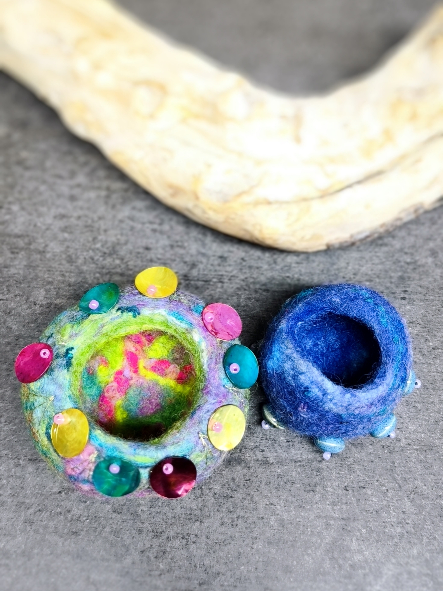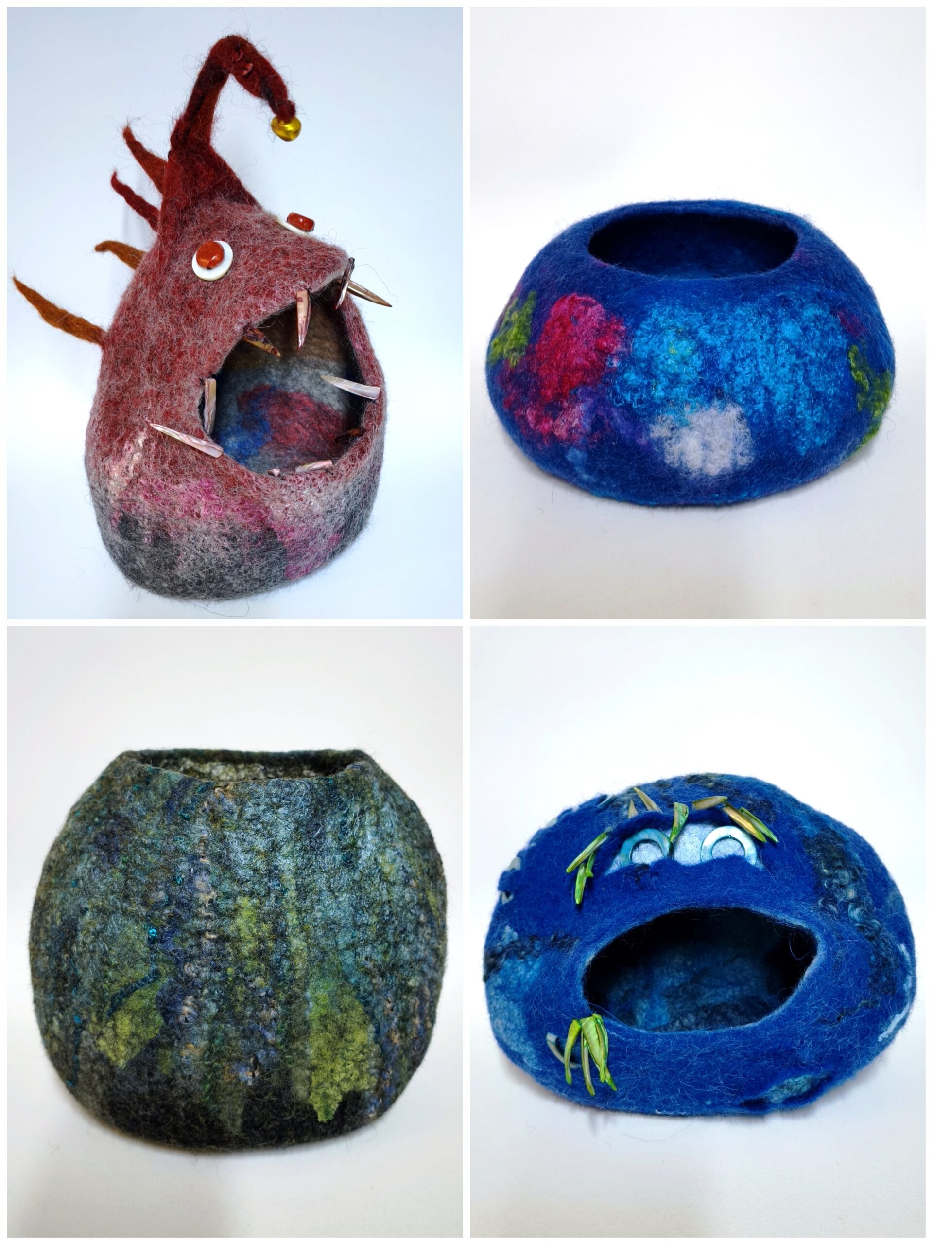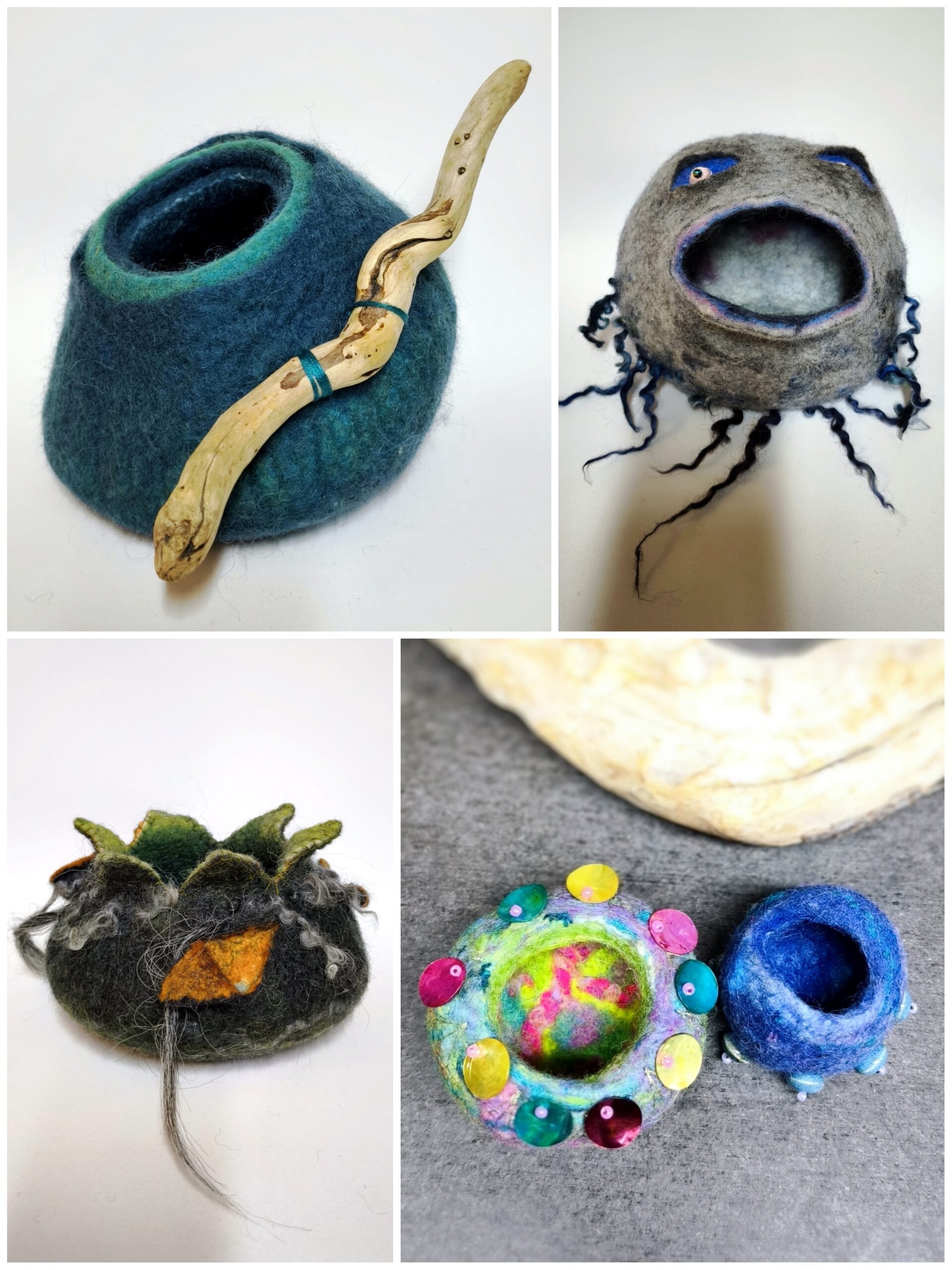 So vielfältig wie die Materialauswahl waren auch die Ideen der Teilnehmerinnen und in der Folge auch ihre gefilzten Gefäße.
